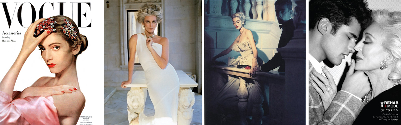 1. VOGUE COVER, 1947 | 2. & 3. CARMEN BY NORMAN PARKINSON | 4. WITH SEAN O’PRY, BY TERRY RICHARDSON, 2012