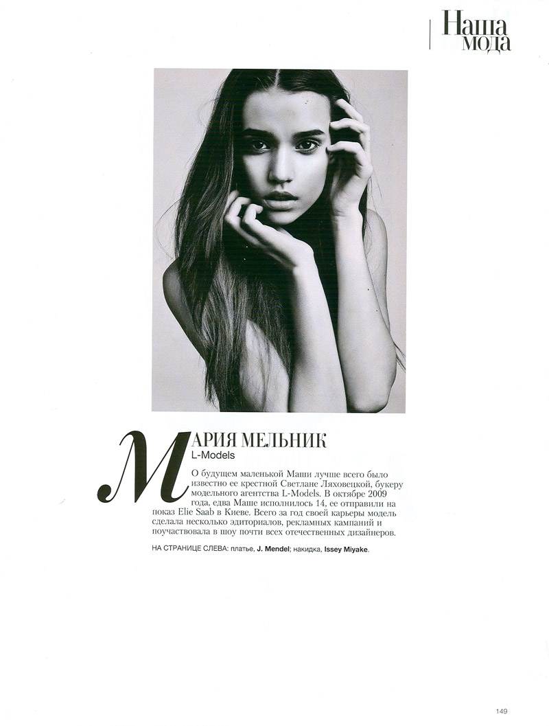 She seems like true potential to me. Good height, great face and her hair is just ridiculous, so ethereal. And the thing I like the most about her, is the fact that she looks like she’s really going for it, and she knows what she’s doing. Going through her pictures, I’m loving her facial expressions. The angry stare is fantastic, and so the calm distant one. I hope she does great, and I can easily picture her in the runway. We could use a brown-eyed Russian girl!
