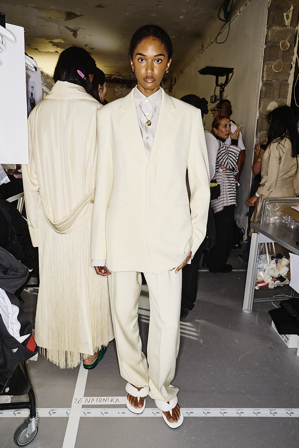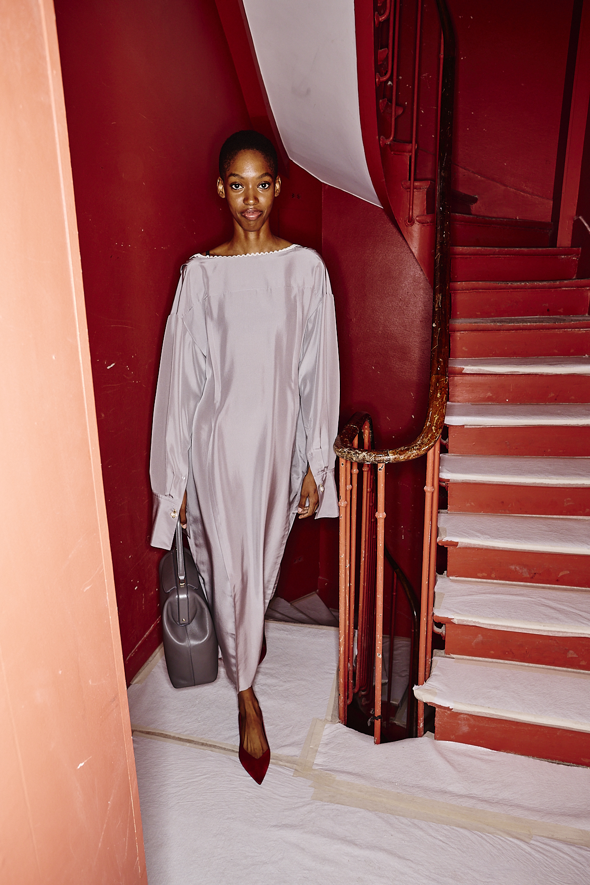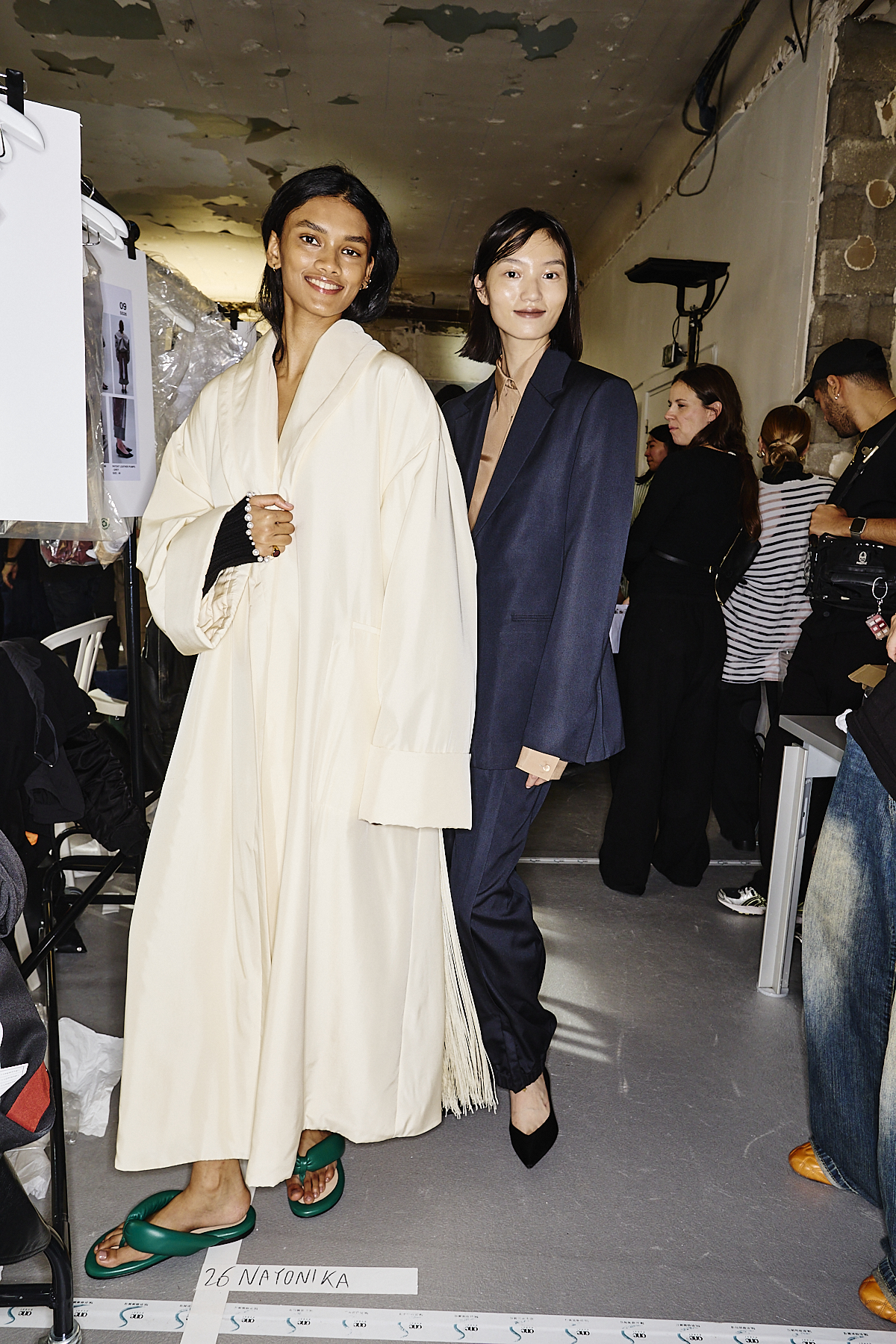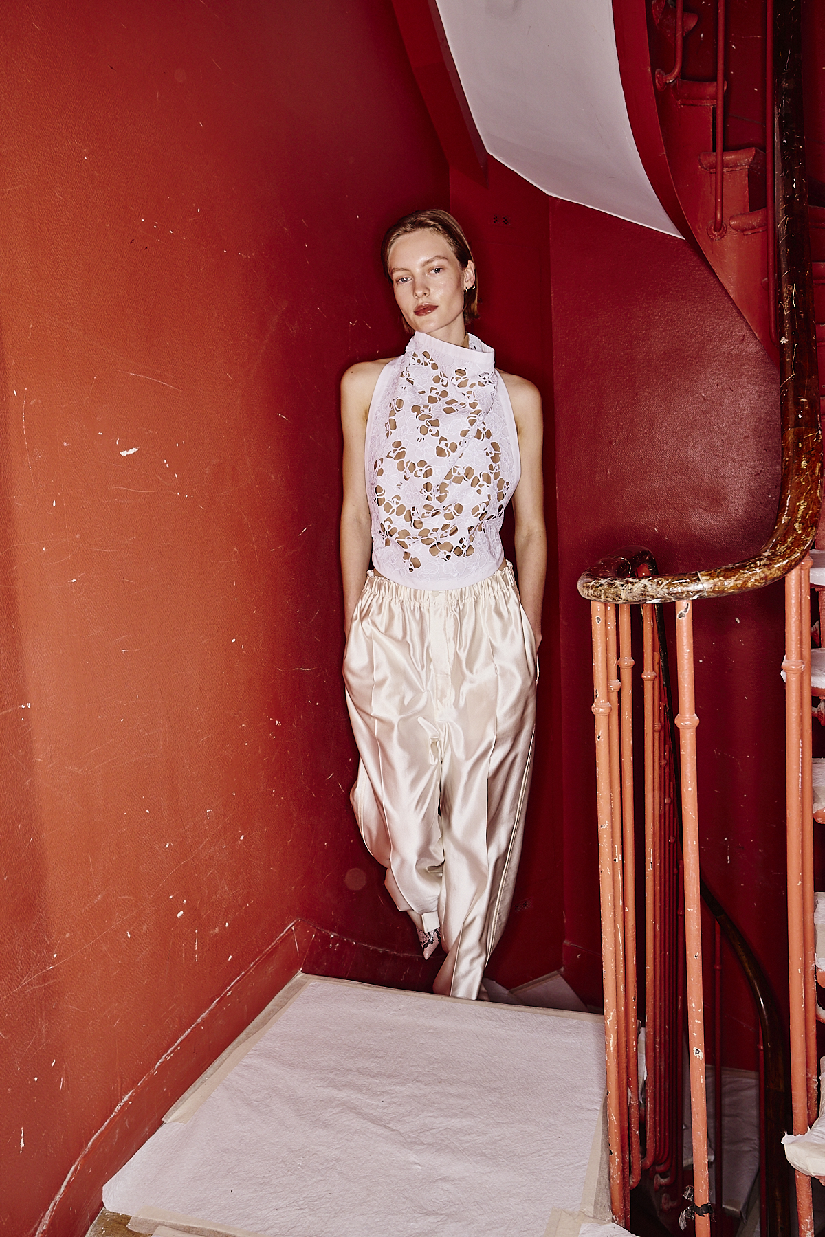 Mark Thomas made his Mark Howard Thomas debut at Carven in the courtyard of the house’s Paris headquarters, stepping into the role once held by his former boss, Louise Trotter, now at Bottega Veneta. His first collection leaned into femininity and minimalism, drawing inspiration from founder Marie-Louise Carven’s beloved white orchids. Delicate lace-edged slip dresses layered with ease, alongside reimagined bed linens and tablecloths transformed into airy dresses, highlighted the designer’s fresh vision. Outerwear also commanded attention, with statement pieces like an asymmetrical tunic trench and a safari-inspired jacket trimmed with zippers. To capture Carven’s effortless chic nature, casting director Rachel Chandler and Thomas sent the models directly from the venue onto the Parisian streets, with opener Lia Marie Mielke leading the way and Camille Desjardins closing the show, seamlessly linking the maison’s heritage to its modern city edge.