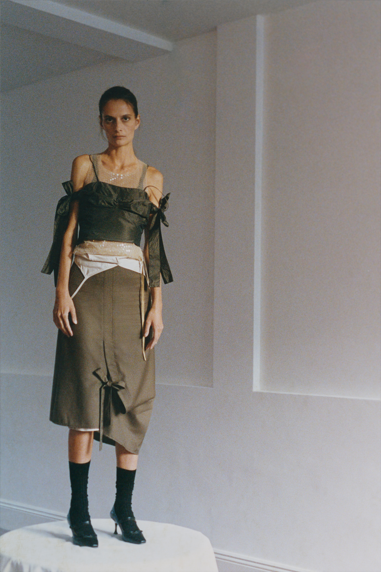 It’s evening in Beirut—one of the world’s oldest cities and long a crucible of culture—and Renaissance Renaissance designer Cynthia Merhej is reflecting on Maya Deren’s Meshes of the Afternoon. The avant-garde silent film follows a woman’s dreamlike journey after she discovers a flower upon returning home and becomes swept into the surreal sequence that unfolds. “Is it a dream or real life?” Merhej asks of the 1943 picture, seeing in it an echo of her own artistic essence. Weaving her love of the surreal and reverence for lineage, Merhej has intuitively crafted the ethos of the fashion brand Renaissance Renaissance, incorporating skills she acquired while studying visual communications and illustration at Central Saint Martins and The Royal College of Art.