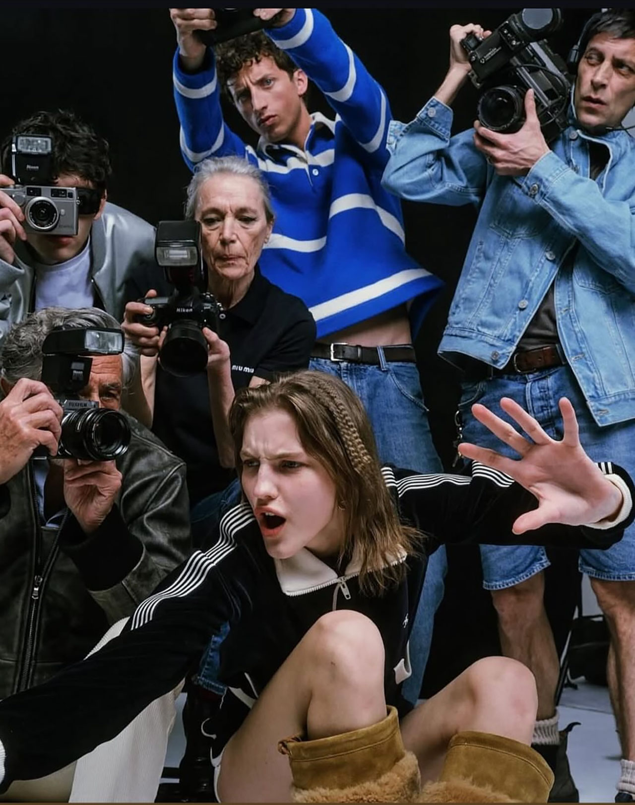 One of my favorite shoots. The idea was to show a group of photographers packed into the pit at the end of a fashion show runway. They are all kind of on top of each other, screaming, with their on-camera flash DSLRs. One of my compulsions is taking pictures that are about taking pictures, and you can see that here. I am constantly thinking about and talking about the act of looking.