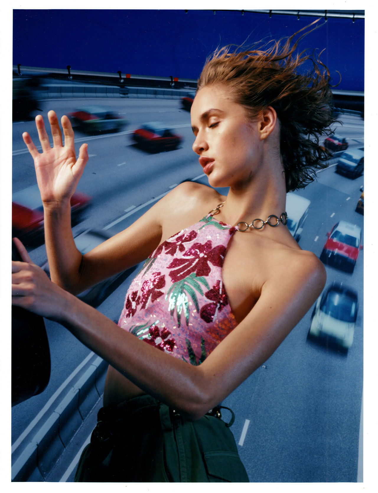 I remember Samia (Giobellina) and I were both really excited when Franziska Bachofen Echt got Celina Ralph on board for the cover. We both felt she had this very evocative, special look and quality to her. The initial inspiration for the story was Britney Spears shaving her head, and of course Celina, with her short hair, has this modern essence of that.