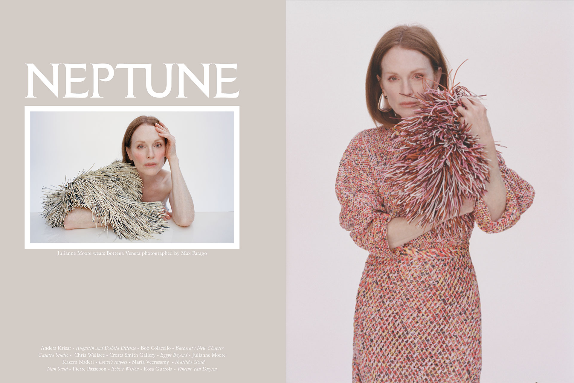 1. The cover of Neptune Papers issue eight, featuring actress Julianne Moore, photographed by Max Farago and styled by Thistle Brown. Julianne had ordered the magazine online, and after a mutual friend shared how much she loved it, I reached out to ask if she would be on the cover, which she kindly accepted. I love the images because it not only represents an important aesthetic moment, but also a real shift in recognition for the magazine. We partnered with Bottega Veneta on this story to highlight Matthieu Blazy’s final collection for the Milanese house, and I love how timeless and clean the story feels.