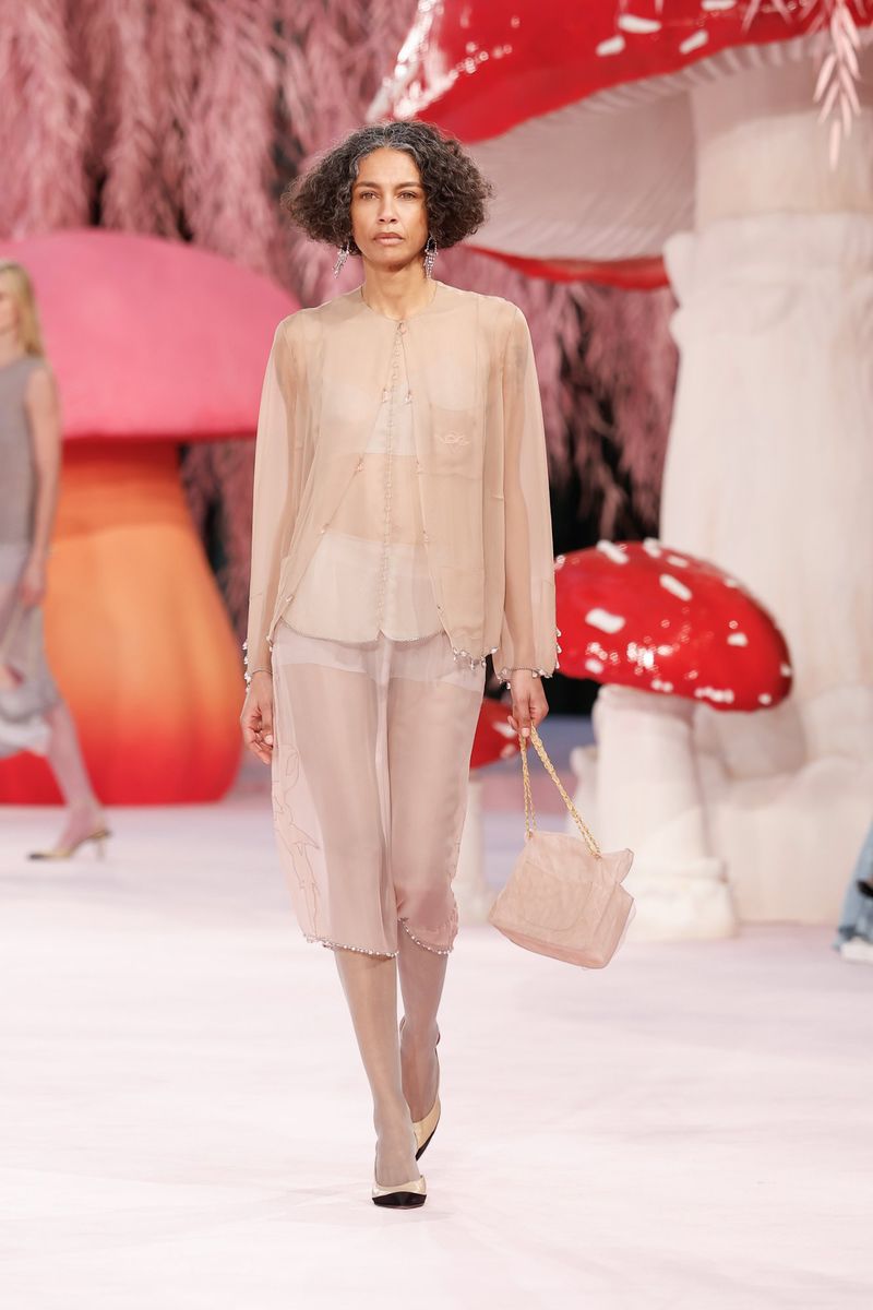 Elongated cranes of primary colors decorated the Grand Palais in Paris as the sounds of Cesária Évora’s voice blended seamlessly into Molly Lewis’ whistle, echoing across the museum. It was the last rollout of Chanel’s Fall/Winter 26 Collection at Paris Fashion Week and a further glimpse of Matthieu Blazy’s imagination. Since taking the reins at the fashion house, one of the most enigmatic aspects of his era at Chanel has been his use of mature models, one of whom stands at 5’8” and sports a salt-and-pepper bob. Nearly 50, Stephanie Cavalli opened Chanel’s A/W 26 Show fresh on the heels of opening the Spring Haute Couture Show in January. With a career that has spanned two decades on and off, the Guadeloupean-Italian model now serves as a quintessential reference for this era’s Chanel woman; a woman who has lived, and it’s reflected in the garments.